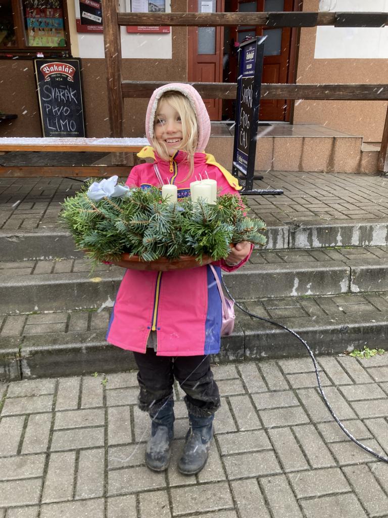 Výroba adventních věnců a svícnů před Hospodou U Splavu